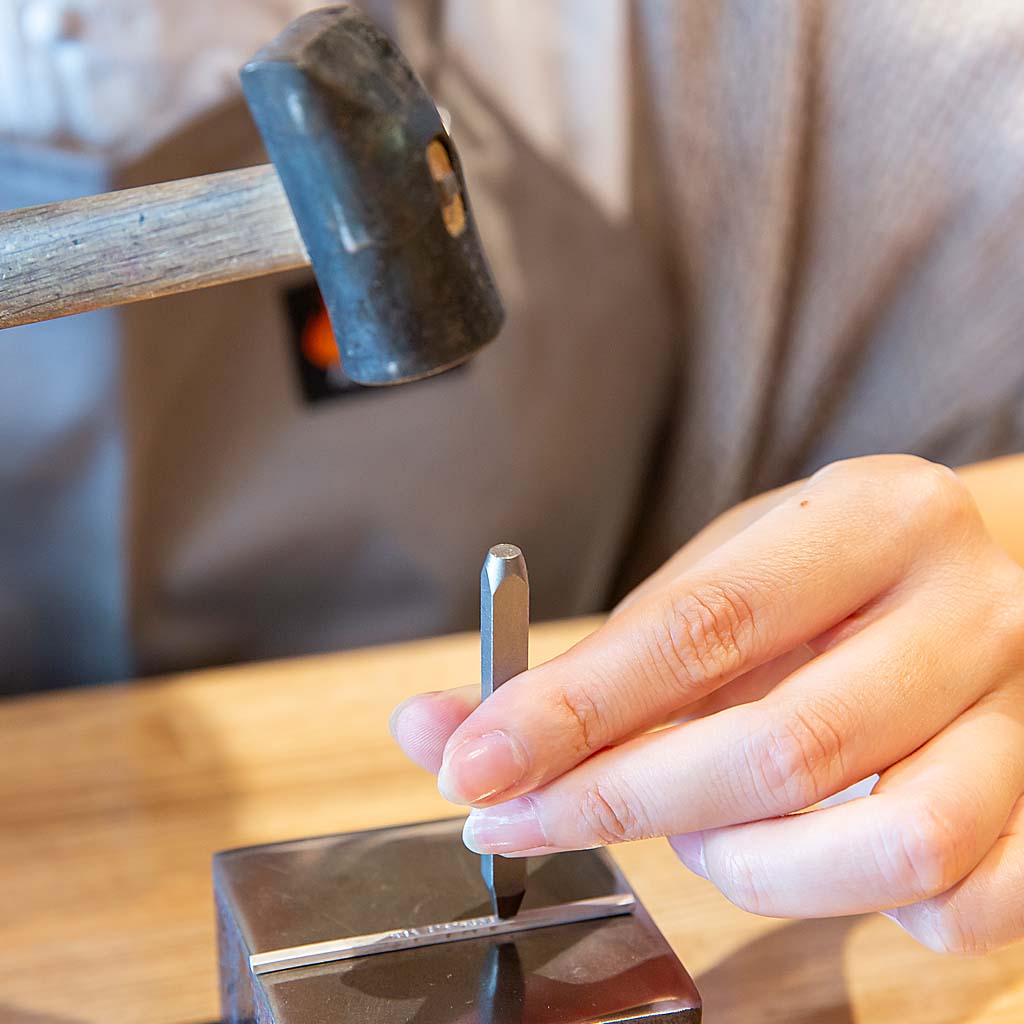 手打ち刻印は、一文字ずつ手作業で打ち込む為、