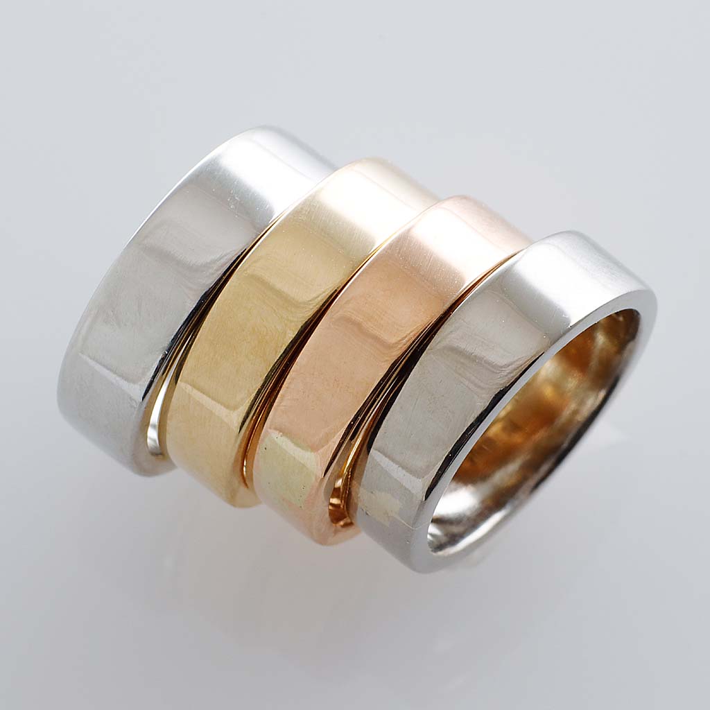 この加工を施すことで、外側を凹ませた「逆甲丸リング」として仕立てることも
