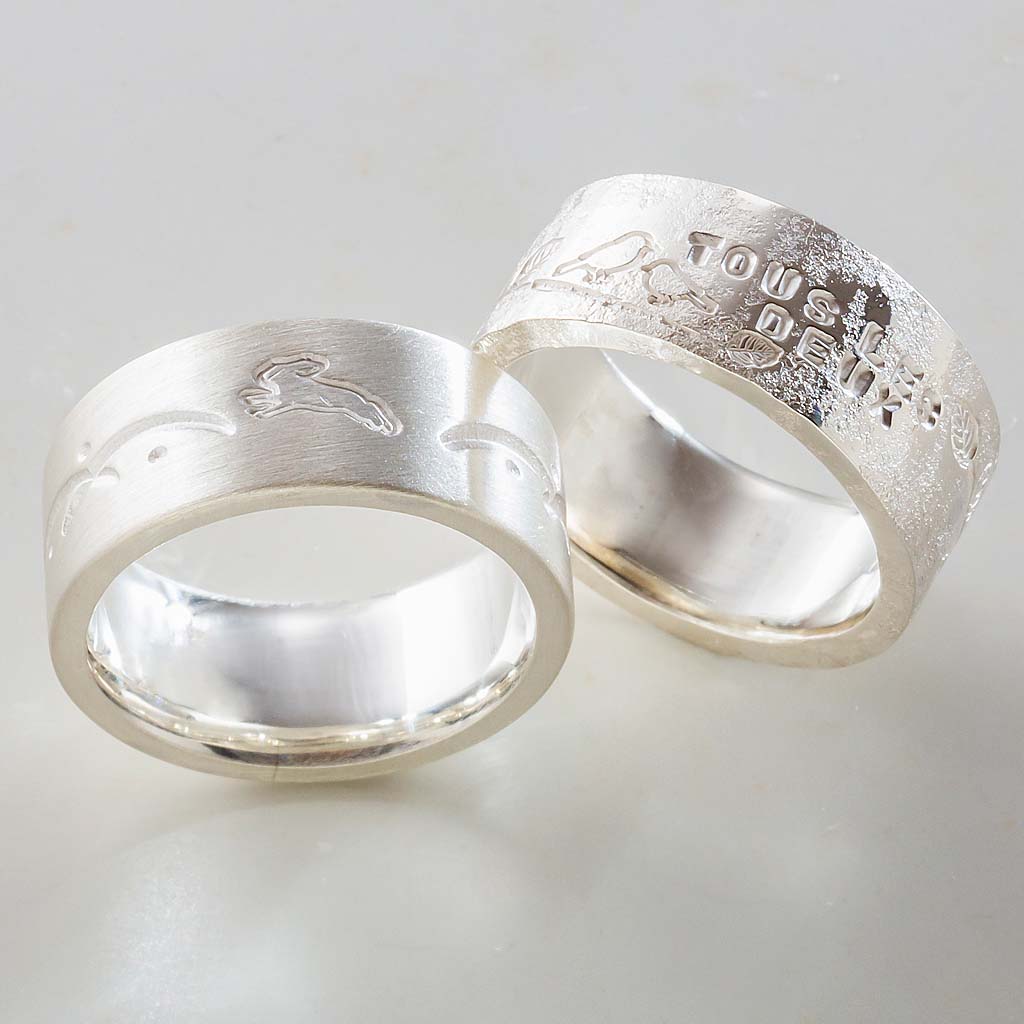 ヤスリで地金を削り出し、リング表面にさまざまなフォルムや表情をつくり出す技法です。